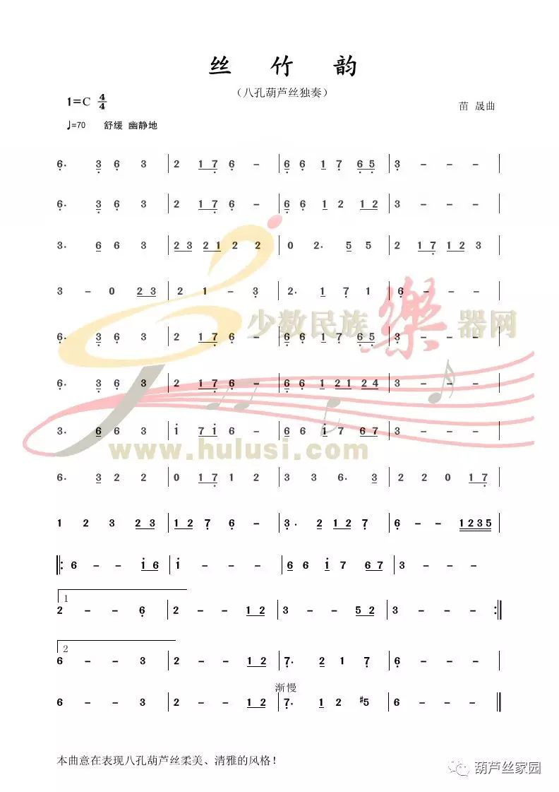葫芦丝《丝竹韵》伴奏 C调 音频