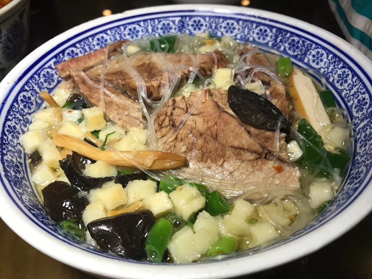 羊肉泡量足肉多,汤头浓郁肉香十足,馍馍最好都自己掰,这样的泡馍才有滋味,特别容易入味,牛肉都是大块的牛腩肉切片,软烂好吃还不塞牙,撒上一点儿葱花,完美~