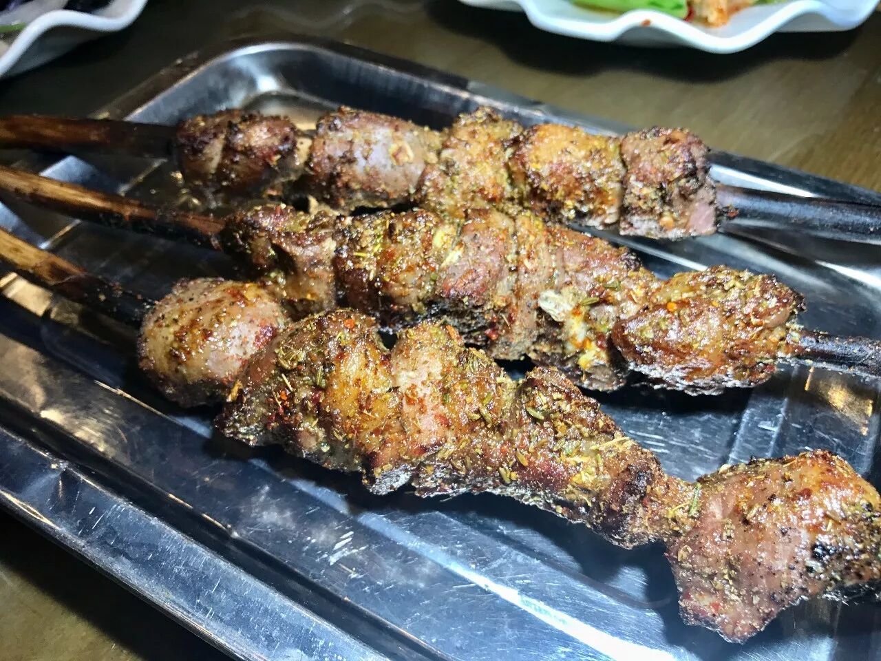 除了泡馍永盛祥的美味烧烤也是一绝,色泽酱红,麻辣鲜香、外酥里嫩、肉质鲜美,烤制好的羊肉串外香里嫩,都是馥郁鲜香的美味~