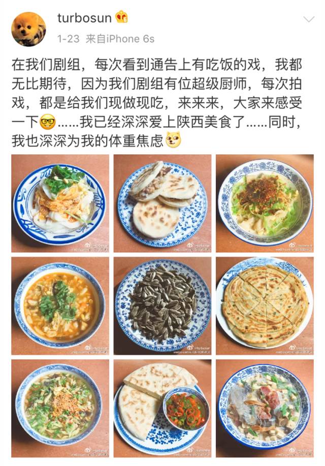 孙俪自己还专门发了微博,为剧组打call,声称《那年花开月正圆》是史上最好吃的剧组,她因为这部剧爱上了陕西美食。