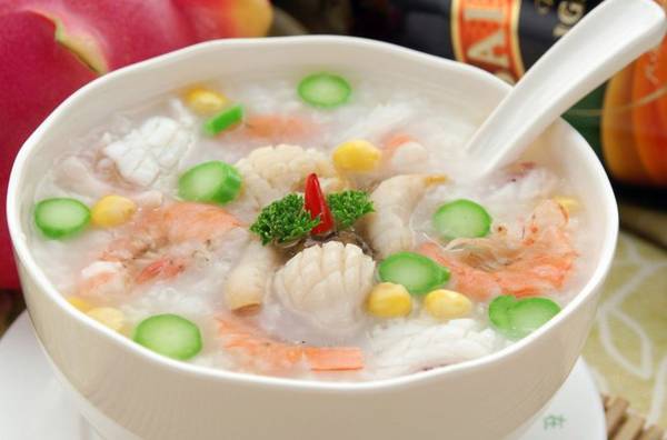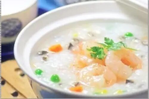 制作方法:粳米如常法加水煮粥,粥煮至半熟时,加入洗净的虾米,米汤稠时即可食用。