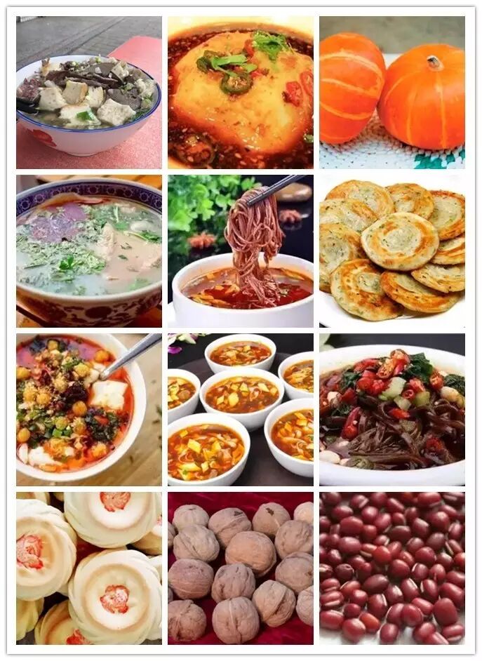 吃:擀面皮、臊子面、肉夹馍、热搅团、泡泡油糕、陇县油旋、马蹄酥、麟游血条面等西府特色小吃。
