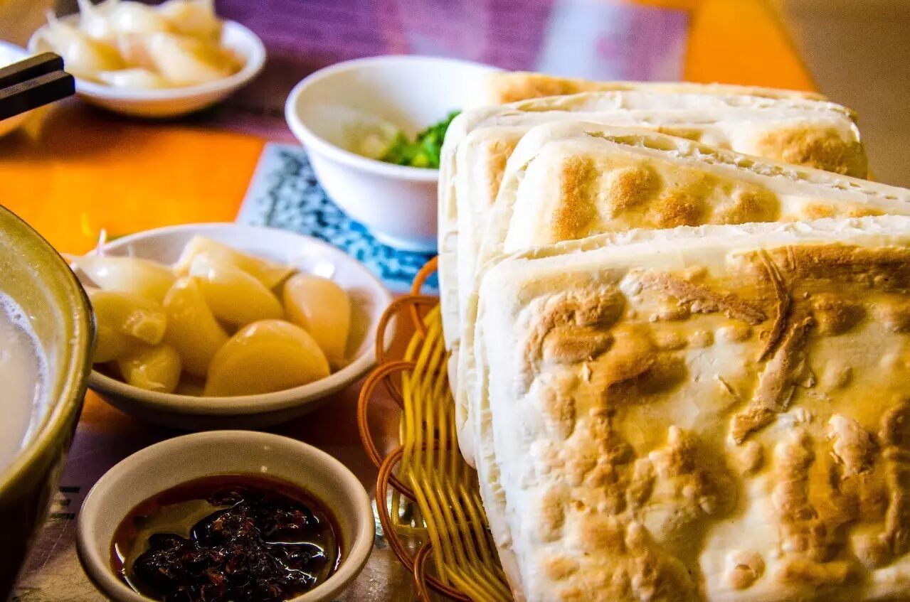 有别于传统泡馍的是,“张记”的配料增添了羊杂、麻花等,“馍”也选用的是岐山特色的农家手工油酥锅盔,可以有多种吃法,泡馍亦或夹自制的油泼辣子都是很好的选择。