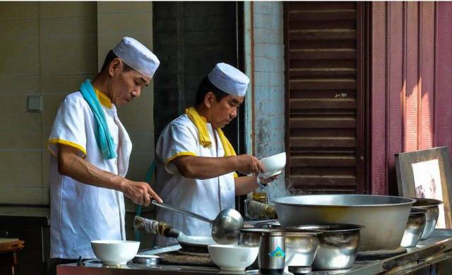 其实,吃羊肉泡馍也是在体验生活的意义。当你迈进店里在桌子旁坐定后,就得按古老的时间一步一步来,慢下来,漫不经心地把馍掰碎,最好东张西望,百无聊赖,最好边掰馍边侃大山。心要静下来,放空,富贵贫贱皆成浮云。一个满腹忧虑何时有房车的人跟一个想着吃饱了抹嘴后去碑林看字帖的人,掰出来馍和吃到的感觉肯定是不一样的。这似乎已经成为一个“慢的仪式”,而生活的意义恰恰就是现在、此时此地。你掰馍的过程,就是在慢慢积淀,就像铸剑的干将莫邪,就像积蓄能量的毛竹,总有爆发的那个时刻。