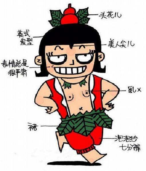 葫芦七兄弟虽各有所长,每一位都有一种神奇的力量,然而唯一不变的是就是他们的葫芦造型,英式发型美人尖,严肃表情大白牙,树叶围裙外带泡泡纱再加七分裤,真的是美美哒!