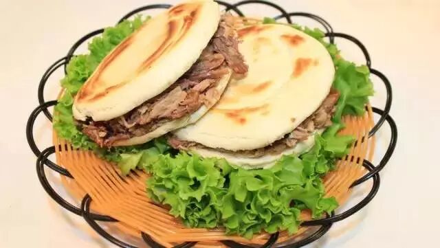 肉夹馍是陕西百姓最爱吃的一种大众食品。肉选用腊汁肉,极为酥烂,滋味鲜长,肥肉不腻口,瘦肉不柴不油。馍数白吉馍正宗,这种馍口感非常酥,味道绵香。连馍带肉一口入嘴,香味悠长。