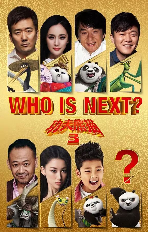 《功夫熊猫》系列堪称是中国传统文化的集成,其中包括了太极和五行拳等功夫、针灸、算命、皮影、中式建筑、青绿山水以及中国特有的亲情表达。在《功夫熊猫2》中,长达数分钟的片尾字幕,伴随着一格一格的“皮影”漫画呈现,令人印象深刻。阿宝、悍娇虎、孔雀沈王爷、鸭子老爹等都被制作成皮影人物,表情生动,动作诙谐,张力十足,充满了艺术感染力。《功夫熊猫3》距上一部已有四年之久,沉寂已久的“神龙大侠”阿宝终于归来,再次展开全新冒险。从此次发布的先行海报中不难看出,“神龙大侠”勤学苦练盖世神功,上演“逆天一字马”。至于到底还会用什么新招式,估计要在影片中再见分晓了。