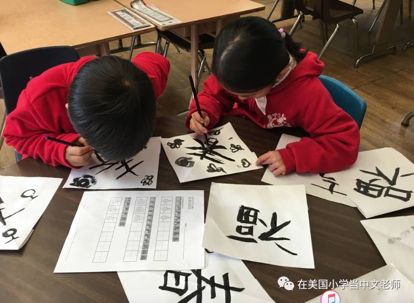 写春联绝对是非常有年味的一项活动,学生还能练习用毛笔。派对前可以提前让学生练习写。可针对学生水平选择字,比如低年级小朋友可以写吉,春,福三个字。我一般会采用以下几个方法让学生按顺序练习: