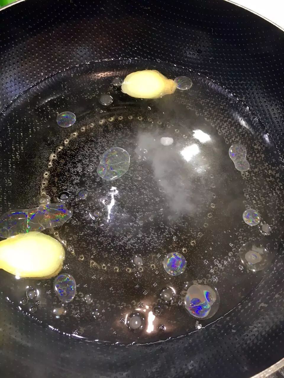 1、将锅中倒入开水,放入姜片,倒几滴油
