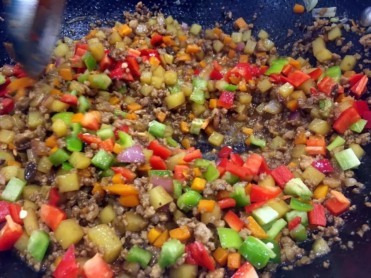 十:倒入切好的红椒和青椒翻炒,色泽鲜艳