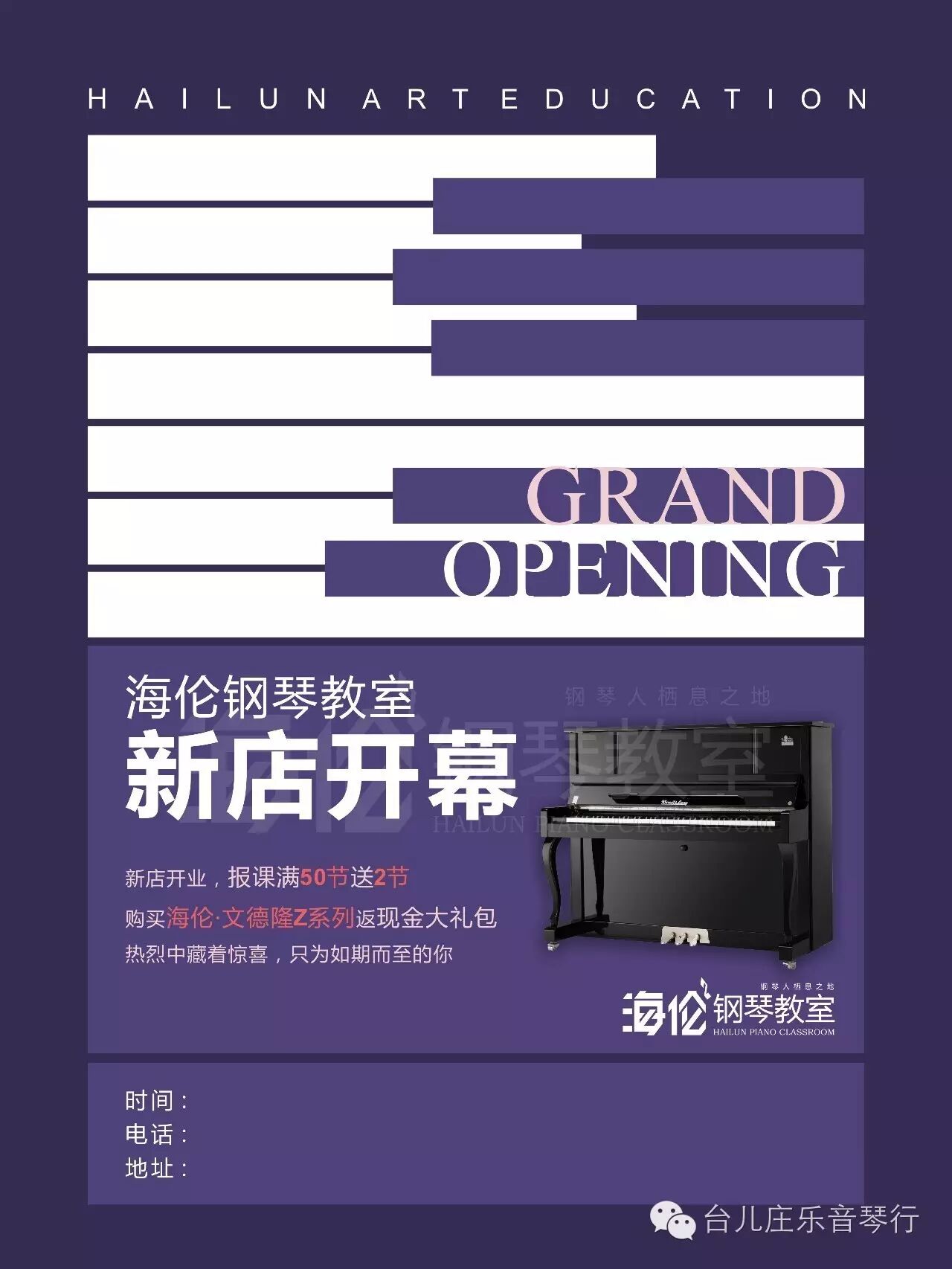 本琴行节假日不休息,热忱欢迎家长、同学前来参观咨询报名。地址:台儿庄区实验小学西门斜对面。电话:6688887。