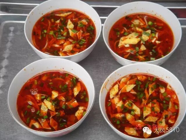 我到过不少地方,不仅国内,也去过国外。从面食在世界上的吃法讲,臊子面的形态和味道是独特的,它是属于大众的,不仅属于中国,也属于世界。你光看看日本记者和香港凤凰台的记者拍岐山臊子面时的吃态,那种香到心里的满足感不是能掩饰掉的;足以说明臊子面大众喜爱之程度。央视《舌尖上的中国》对岐山哨子面的刻画虽说入木三分,但要表达出岐山人对岐山臊子面的喜爱程度完全不够。在家乡只要有人家过事,早上都少不了臊子面,先上一个合盘,里边放上豆芽和菠菜,周围围上肘花和皮冻,浇上醋汁,那个酸爽啊,无法描述。三两口菜,先占住你的嘴;等臊子面上桌,虽说都要先相互礼让,开吃以后,吸溜吸溜的声音此起彼伏,开始只是鼻子冒汗,吃着吃着全身冒汗,一个人不咥上十碗八碗是不放筷子的,中间再来一根金丝猴,稍作休息,再来三碗五碗不成问题;直到一个一个肚儿圆,方才丢下筷子。在一声声“今儿面不错”的赞扬声中离开席面。