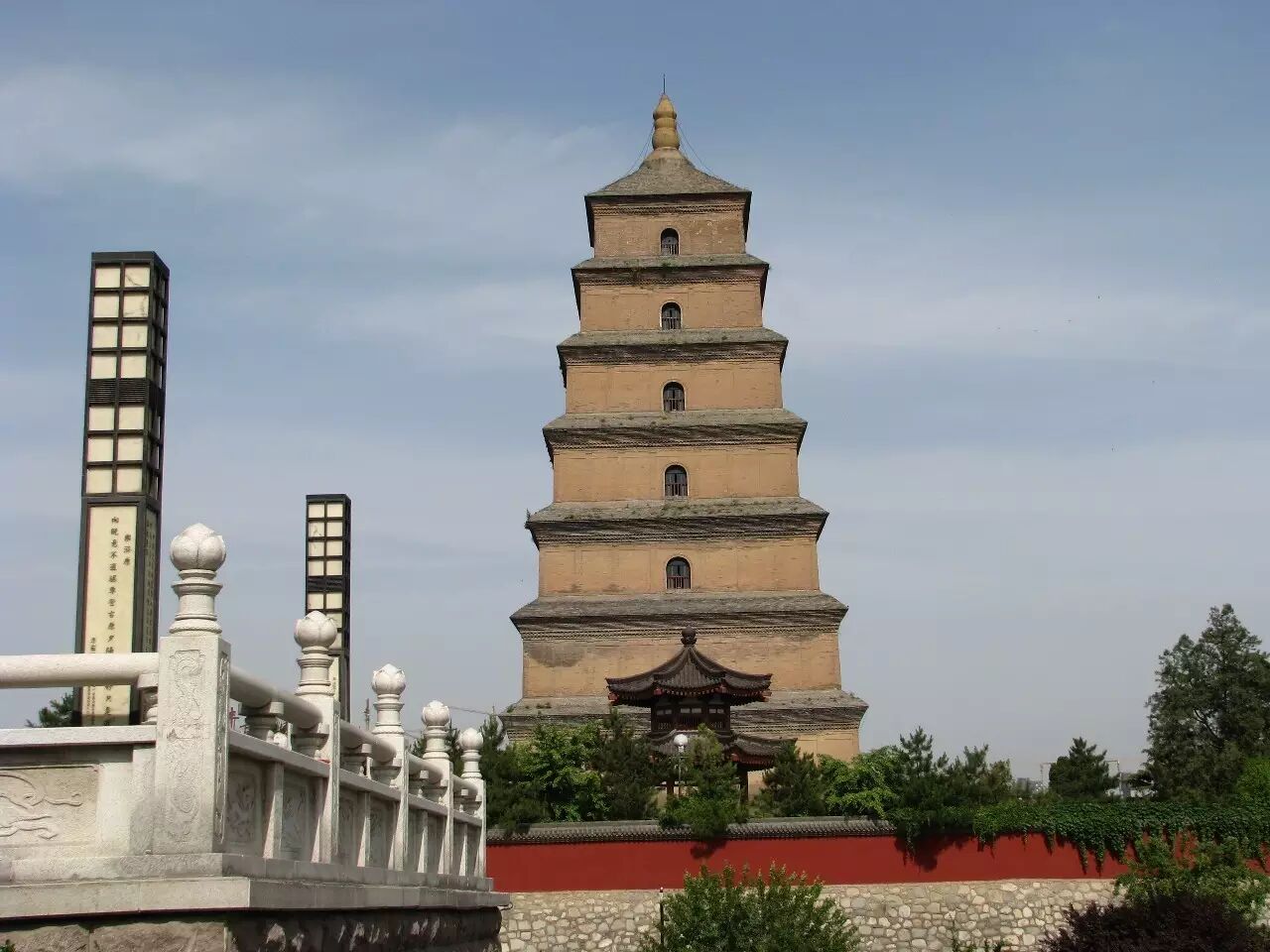 大雁塔:现存最早、规模最大的唐代四方楼阁式砖,玄奘法师督造,收藏了法师的顶骨舍利子。