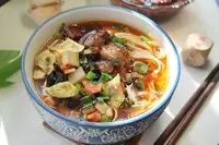 面条捞入碗中(面条一定要捞得少,汤多一些),浇上半勺汤、一勺底菜。再浇上一大勺肉臊子,点缀一把蒜苗末,几片蛋皮,也就是“漂菜”,一碗“酸、辣、香”的岐山哨子面就做得嘞~