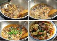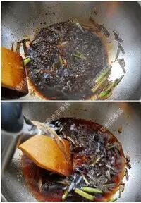 锅里多倒些油,油热后放葱姜丝,炒出香味,倒醋,待锅中醋沸腾后加入开水(多一些,因为一会儿要浇这个汤)。