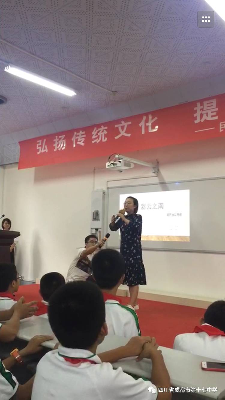 2017年9月13日下午4点,我校初一年级全体同学在阶梯教室参加了“弘扬传统文化,提升音乐素养——民族乐器葫芦丝”欣赏体验活动。四川音乐学院的李老师和陈晓英校长出席了本次活动。