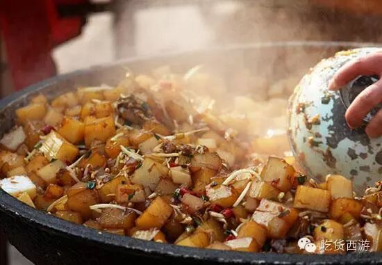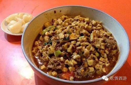 这应该可以理解为是泡馍的一个分支之一,口味较泡馍会酸辣一些。小炒跟泡馍的区别在于小炒所用的肉是切好的新鲜肉丁,也是加上调料在锅里烧煮。在用料上,小炒增加了黄花菜、木耳、青菜、豆腐干、鸡蛋等配料,吃着酸辣爽口。不能吃辣的筒子们一定要提前交待服务员,不过瘾的还可以加鸡蛋加粉丝。推荐小皮院西口马峰家、洒金桥刘信小炒、西羊市老安家、大皮院老乌家。