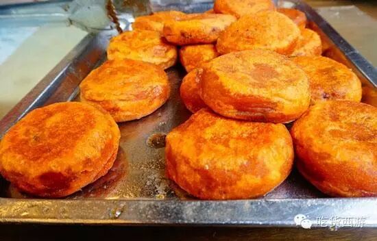 这个全名应该叫黄桂柿子饼,也是时令食品,过了时令没了柿子也就没了。这个据说还跟李自成有关系,不过也都是传说,味道好才是王道。里面是柿子搀了面粉,裹着馅料油煎出来的甜食,有核桃馅的、有八宝豆沙的,推荐北广济街的老徐家和北院门的伊古斋。