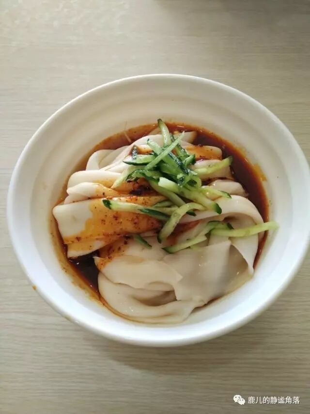 北头十街坊的汉中热米皮(原韩森寨二十年老店)算是一家,我去他家吃过几次热米皮,米皮是自己蒸的,味道的秘密在于那口辣椒。汉中面皮可谓“汉中风味小吃四绝”之首。我问米皮店店主的儿子,他家开了二十年的老店以前在哪儿?他说在韩森寨十字,他从小跟着父母在西安卖米皮,小的时候就常在店里帮忙,后来韩森寨拆迁,他们回了几年汉中老家,如今又租起店面开了热米皮店。