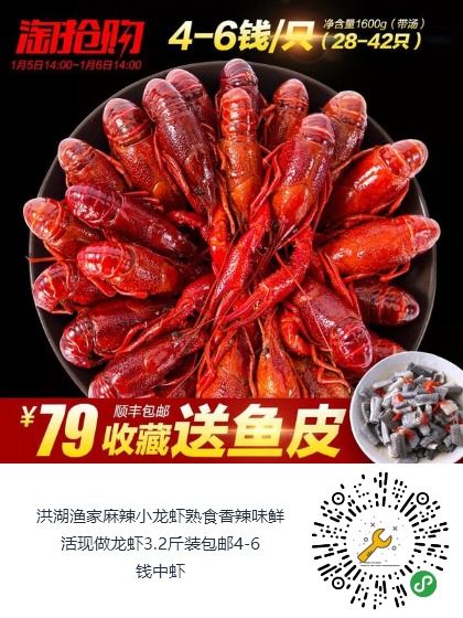 【吃货】洪湖渔家麻辣小龙虾3.2斤装。4-6钱中虾。看产地是湖北风味,这个可能会稍微有点辣,各位要有心理准备,一般来讲3.2斤的熟食小龙虾,大概会有一半多一点的净虾,也就是一斤六七的样子,淘抢购结合10券后69包邮,外面一斤净虾大约是98,各位可以算下,还是非常值的。买了。