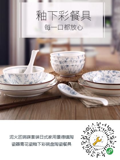 【过年换新】【性价比】泥火匠景德镇青花瓷釉下彩碗盘12头陶瓷餐具。微波炉烤箱适用。券后降30元,69元。釉下彩比较健康,也比较好看,各位过年打算换换盘子碗的,可以研究下。