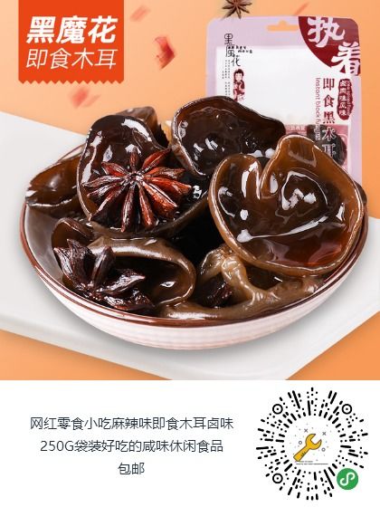 【白菜】【大额券】黑魔花香辣即食木耳10袋250g。