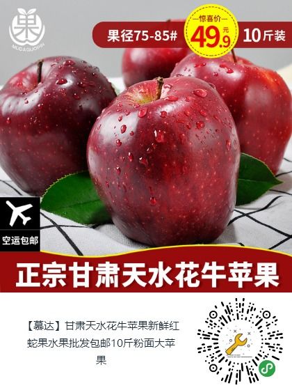 【水果】慕达甘肃天水花牛苹果红蛇果10斤,中国国家地理标志产品,中国驰名商标,世界三大著名苹果品牌之一(蛇果、日本富士、甘肃花牛)。券后降10元,39.9元。