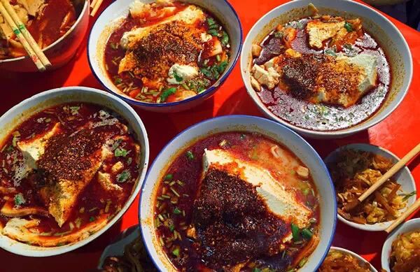 全陕西人最爱吃的早餐,没有之一!每天早晨一睁眼,第一件事就是吃胡辣汤,吃前浇一勺店家精心熬制的红艳艳的辣椒油。把配的坨坨馍掰碎搅在碗里,吃罢舌尖发麻,微微冒汗,浑身舒坦。嘹咂咧!