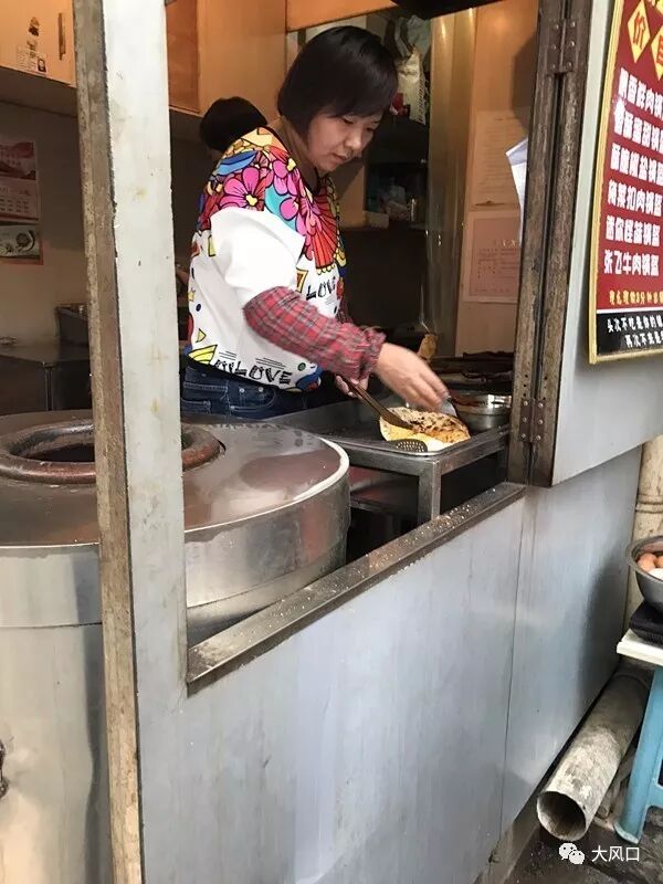在等锅盔出炉的时候,仔细观察了下老板做锅盔的方法。