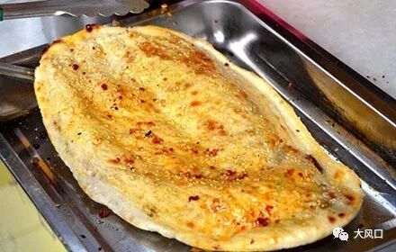 再将刚烤好的锅盔一切两半,爱吃辣的可以在上面刷一层辣酱,原味的直接拿纸包好,边走边吃。