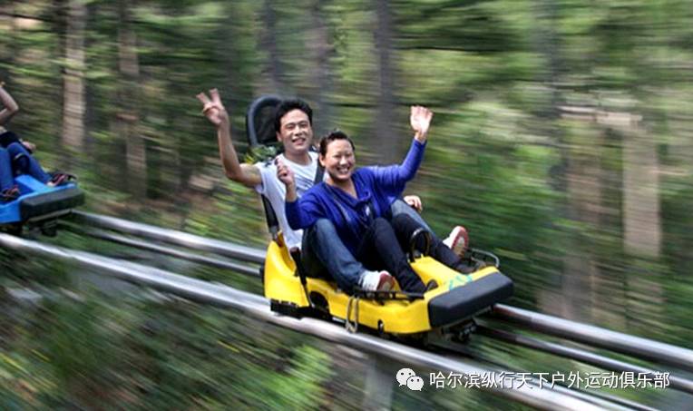 激情滑道区滑道是由圆形轨道和钢架构成,它宛如一天长龙,沿着山坡向下延伸,全长1020米,落差80米。此滑道是无动力锁轨式滑道,体验者的安全是有保障的,因为人不会被甩到车外,车不会甩出轨道,您还可乘坐一辆可以控制速度的滑车顺势而下,最高时速40公里/小时,适当的控制车速体验最佳效果,尤其是进入弯道时人有一种欲冲出滑道而不能的刺激感觉,体验那种穿越时空,势不可挡的刺激感和征服感。