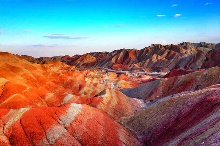 去张掖丹霞国家地质公园,在阳光的照射下石头变得艳丽七彩,红色砂岩在经过岁月的洗礼,形成各种奇岩怪石,色如渥丹,灿若明霞,让人不得不感慨大自然的鬼斧神工