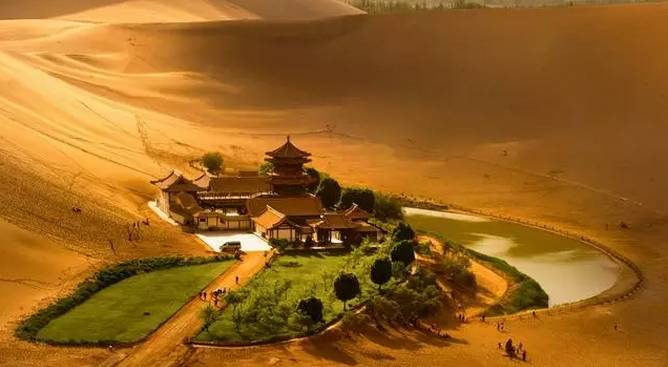 去“沙漠第一泉”之称的月牙泉,月牙泉在茫茫沙漠的怀抱中已有几千年,从不枯竭也从不被风沙吹落蔚为奇观,行舟在月牙泉中欣赏湖光漠色,确实不是一般的旅行体验。