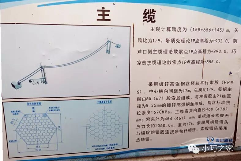 葫芦口大桥面高程857m,桥梁全长746m。桥面行车道宽10m,包括两侧人行道在内总宽13.5m。