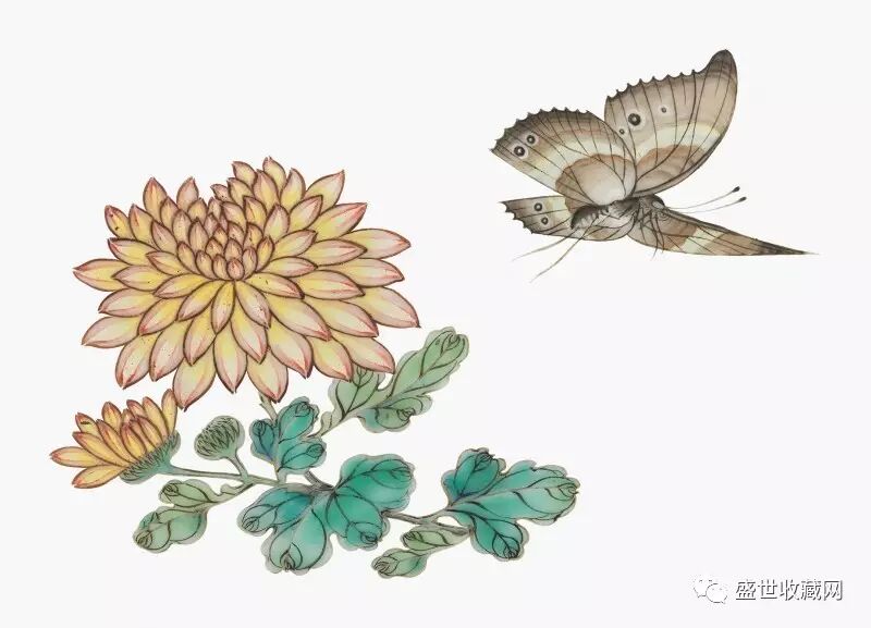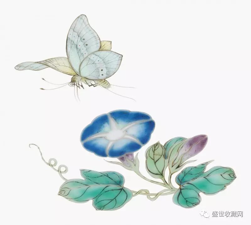梅、兰、菊、竹自古被称为“花中四君子”,“菊”象征着长寿与财富。牵牛花是喇叭形的蓝色花朵,自十五世纪初开始出现在在中国瓷器上。