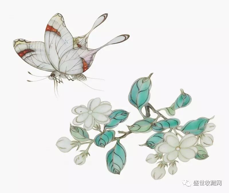 这两只葫芦尊上还点缀以白色茉莉。茉莉花于十八世纪时常用于装饰宫殿,并会用来熏香室内与衣服。中国有多种茶花生长,但以红色山茶花最常见于中国艺术作品之中。红色予人欢欣的感觉,山茶花于农历新年期间盛放,因此经常用于点缀家居,祝愿“花开富贵”。
