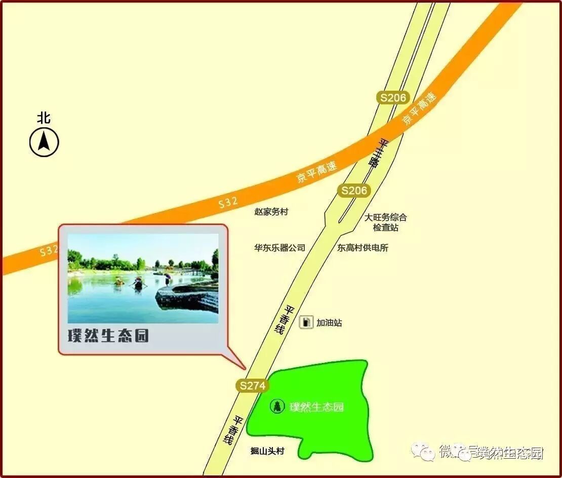 (2)北京(京通快速)→燕郊(通燕高速)三河(G102国道)到沿口左转平香线S274,北向灵山寺直行4公里处掘山头村北(璞然生态园)即到。