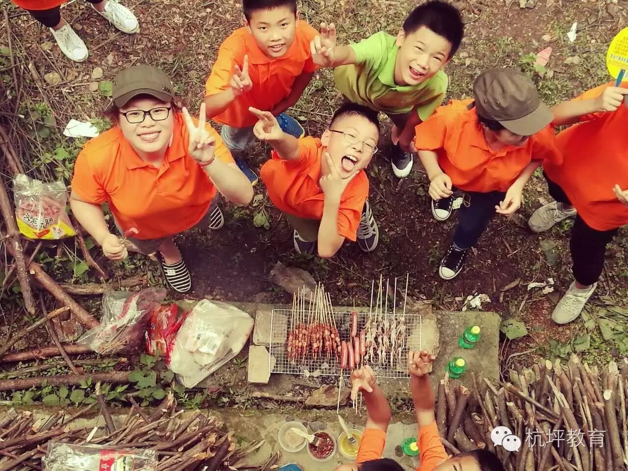 爬山之后,肚子不自主的发出叽咕叽咕的“饥饿交响曲”。烧烤师们迫不及待地开动了,烤羊肉串、年糕、香肠……,阵阵烤香扑鼻而来,乐坏了每一个孩子