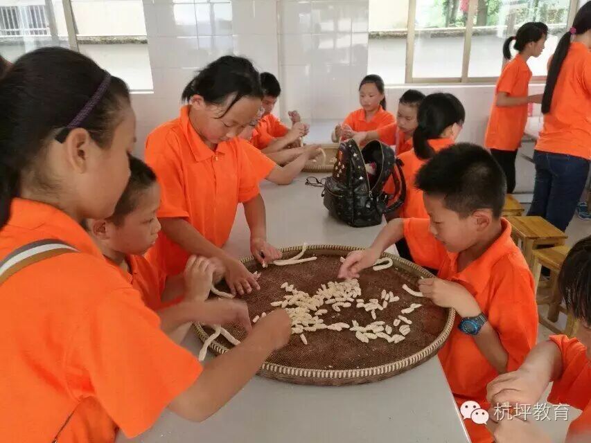“自给自足,丰衣足食”——和面、揉面、搓面绳、滚米筛。孩子们学的是那样的认真,并纷纷表示回到家第一时间就是为爸爸妈妈亲手做一顿“感恩父母“牌米筛爬。吃着自己亲手做的晚餐,孩子们乐的合不拢嘴。