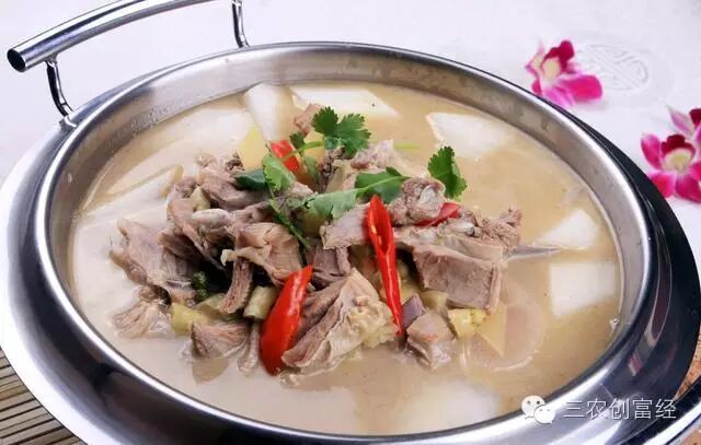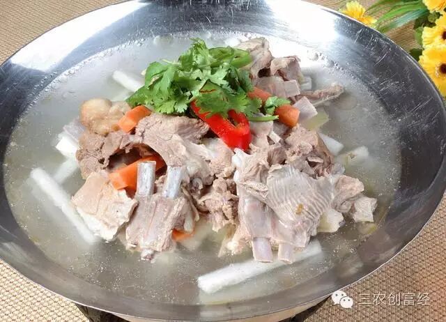 羊肉也是北京人非常喜爱的肉食,除了大家熟知的涮羊肉外,羊蝎子火锅也常常是高朋满座。羊蝎子就是羊的大脊梁骨,因为形状像蝎子,所以俗称羊蝎子。羊蝎子脂肪热量都低,蛋白质含量高,美味又营养。为了去除羊膻味,火锅里的香料很重要,生姜、自然、白胡椒粉、料酒、生抽、老抽都不能少,快出锅的时候放盐,涮菜一般选用大白菜、豆粉、菌类、土豆、粉丝等。吃羊蝎子也有讲究,不能只啃骨头和吃厚实酥烂的肉,还要把骨头里的骨髓吸出来吃了才叫真的过瘾。单县的羊肉汤是鲁菜中的一道经典传统美食,早在19世纪初期就已经创立并流传至今,和金华火腿、北京烤鸭等齐名。单县出产青山羊,这种羊肉质细嫩,膻味小,熬出的羊肉汤呈现乳白色,鲜味爽口,肥而不腻。单县羊肉汤的做法和西北羊肉汤类似,不过在佐料的选择上更丰富,要加入葱姜、白芷、肉桂、草果、陈皮、杏仁、花椒等等,羊肉汤出锅后,还要在碗里加上蒜苗末、香菜、辣椒油等。除了羊肉汤,还有羊杂为主料的羊汤,色香不同,口味各异,非常受欢迎!![]()