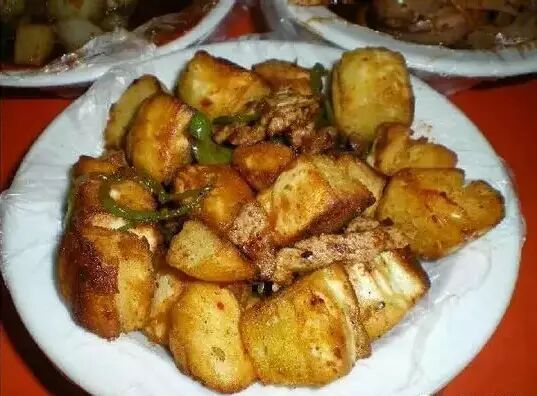 洋芋卜拉,还是原来的洋芋,还是原来的味道,吵着吃更有一番风味。这名字让外地人看有点玄,悄悄的告诉你,就是切条的土豆和着面,不停的揉搓,待均匀后直接放在锅里蒸熟就能吃了,这么独特的庆阳吃法在如今土豆成为主食后应该大力推广一下啊。