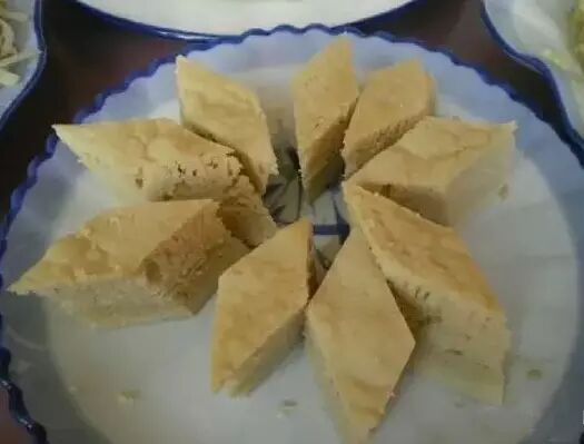 油糕还有一种吃法就是切成小块撒点白糖吃!汗!这是啥吃法呀,红糖又白糖的 ,其实正宗的油糕里边是糖面。