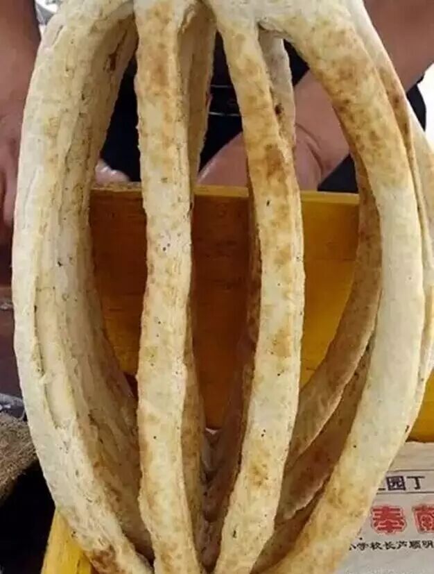 看看像神马?没错,像炉齿子,所以叫做炉齿馍,在西峰东湖公园南侧有家过桥米线店能买到这种馍
