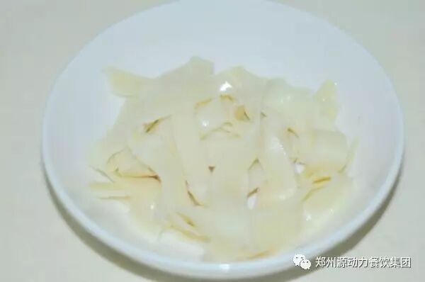 8.做好的凉皮,切成条。(如果粘的话,刀上抹油就容易切了)