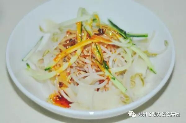 1.准备材料。葱蒜用压蒜器压成泥,放入清水里浸泡片刻成葱蒜水。黄瓜切丝、绿豆芽摘去根。