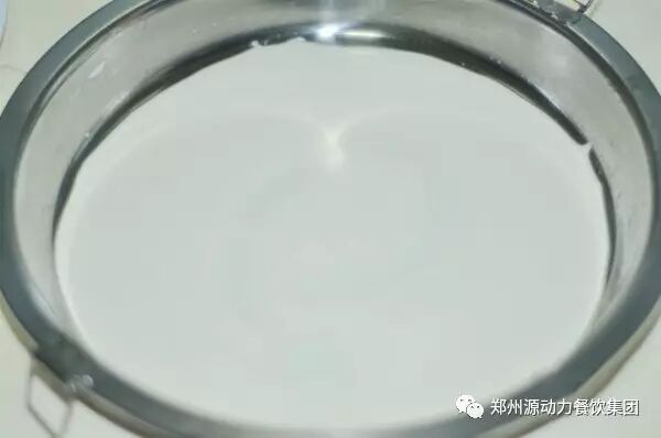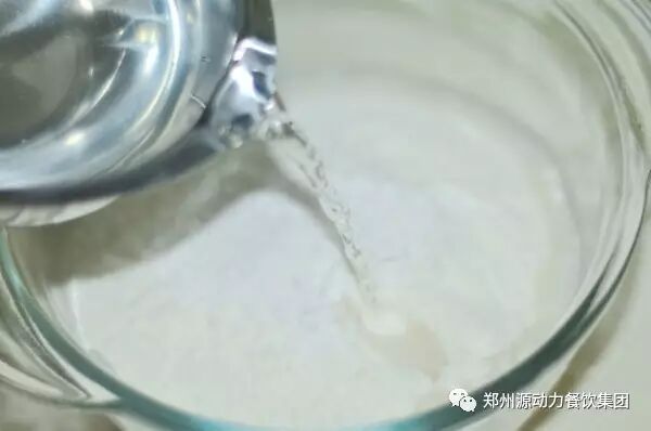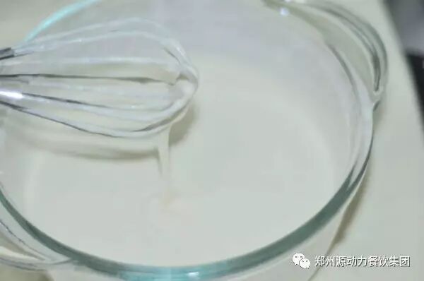 4.再倒入剩下水,一直搅拌到没有颗粒状。面糊变的顺滑,提起来的时候,可以连成一条线状。(如果提起的时候,觉得有点费劲,就再适量的加入一点点的水,直到提起很容易的成流水线状)