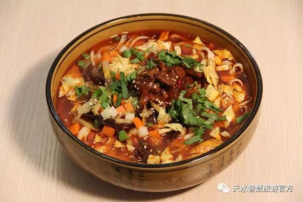 臊子面是陕西关中地区的风味小吃,品种多达数十种,其中以岐山臊子面享誉最盛。臊子面的特点是面条细长,厚薄均匀,臊子鲜香,面汤油光红润。而岐山臊子面乡土风味尤为浓厚,它具有薄、筋、光、汪、酸、辣、香等特色,吃口柔韧滑爽。