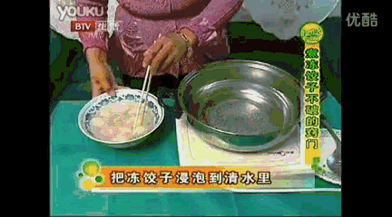 方法二: 家中没有微波炉也不要紧,可以将冻饺子先泡在冷水里。
