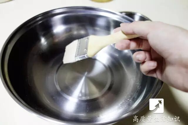 用蘸了油的刷子轻刷平底金属盘底