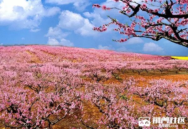 在荆门,有一种如梦似幻,好似仙侠影视巨作的美景,那是屈家岭月宝山的万亩桃园